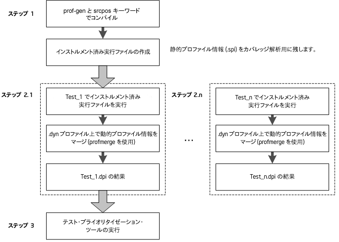 profmerge ツールで各アプリケーション・テストの動的プロファイル情報ファイル (.dyn) をマージして生成される .dpi ファイル。 個々のテスト用に生成されたすべての .dyn ファイルで profmerge ツールを実行し、生成された .dpi ファイルにテストを一意に識別できる名前を付けます。
